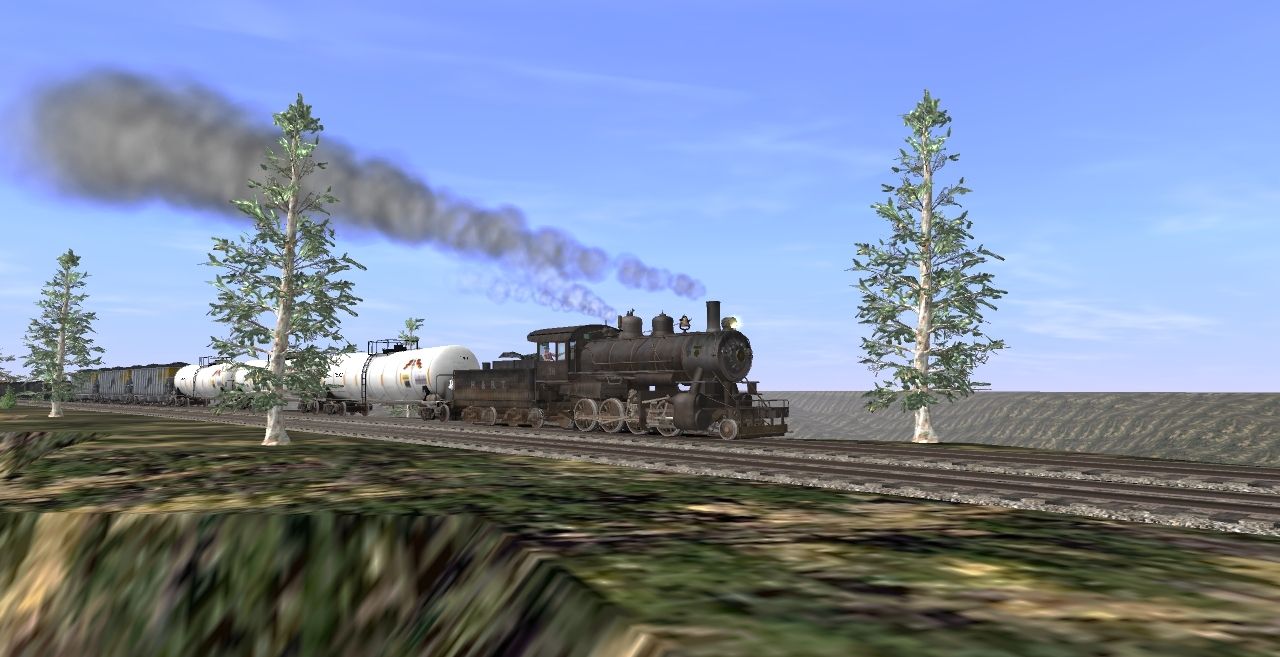 Tags: Trainz: A New Era, Thomas Canyon Railroad, Default, Baldwin medium 2-8-0H, Baldwin medium 2-8-0H tender, Custom 23000 gal tank - HK Oil, Custom 100 Ton Hopper - MRM, C&O Coal Gondola, Bogie Log Wagon Short Knuckle, 20800 gal ADMX Tank Car (ADM), 70ton AAR Flatcar C&O, 70ton AAR Flatcar PM, ACFX (dirty) Cylindrical Hopper, ATSF Ce-11 Caboose