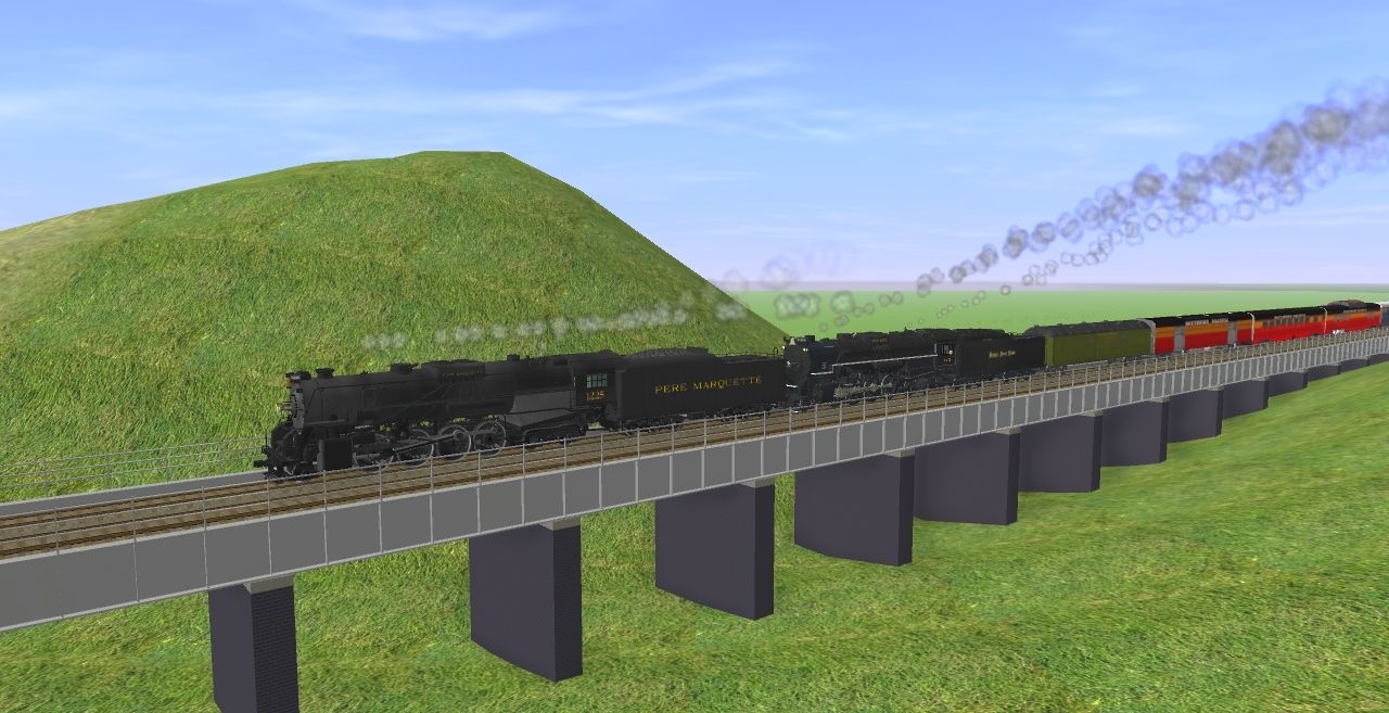 Tags: Trainz: A New Era, Thomas Canyon Railroad, Default, Pere Marquette 1225 Berkshire, NKP 765 with black drivers, Pere Marquette 1225 Tender, NKP 765 Tender, Express C&O George Washington, Passenger Baggage Southern Pacific, Passenger Coach Southern Pacific, Passenger Dome Southern Pacific, Oregon Shortline RR Coach, Oregon Shortline RR Dining, Oregon Shortline RR Observation