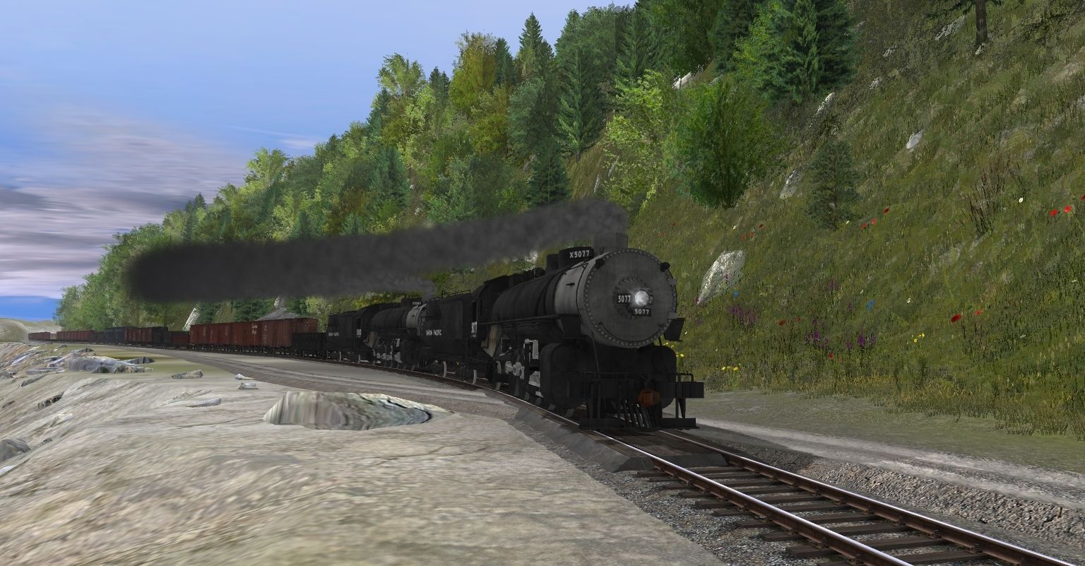 Tags: Trainz: A New Era, Canadian Mountain Diorama, UP JMB TTT 6 5077, UP JMB TTT 6 5080, UP JMB TTT oil tender, USRA C Gondola C&O, 40ft Boxcar CP, 40ft Boxcar CN Late Leaf, USRA C Gondola NYC, USRA 55T H B&O Mid, 40ft Boxcar NH, Pennsylvania RR Covered Hopper, NW 85 Ton Hopper