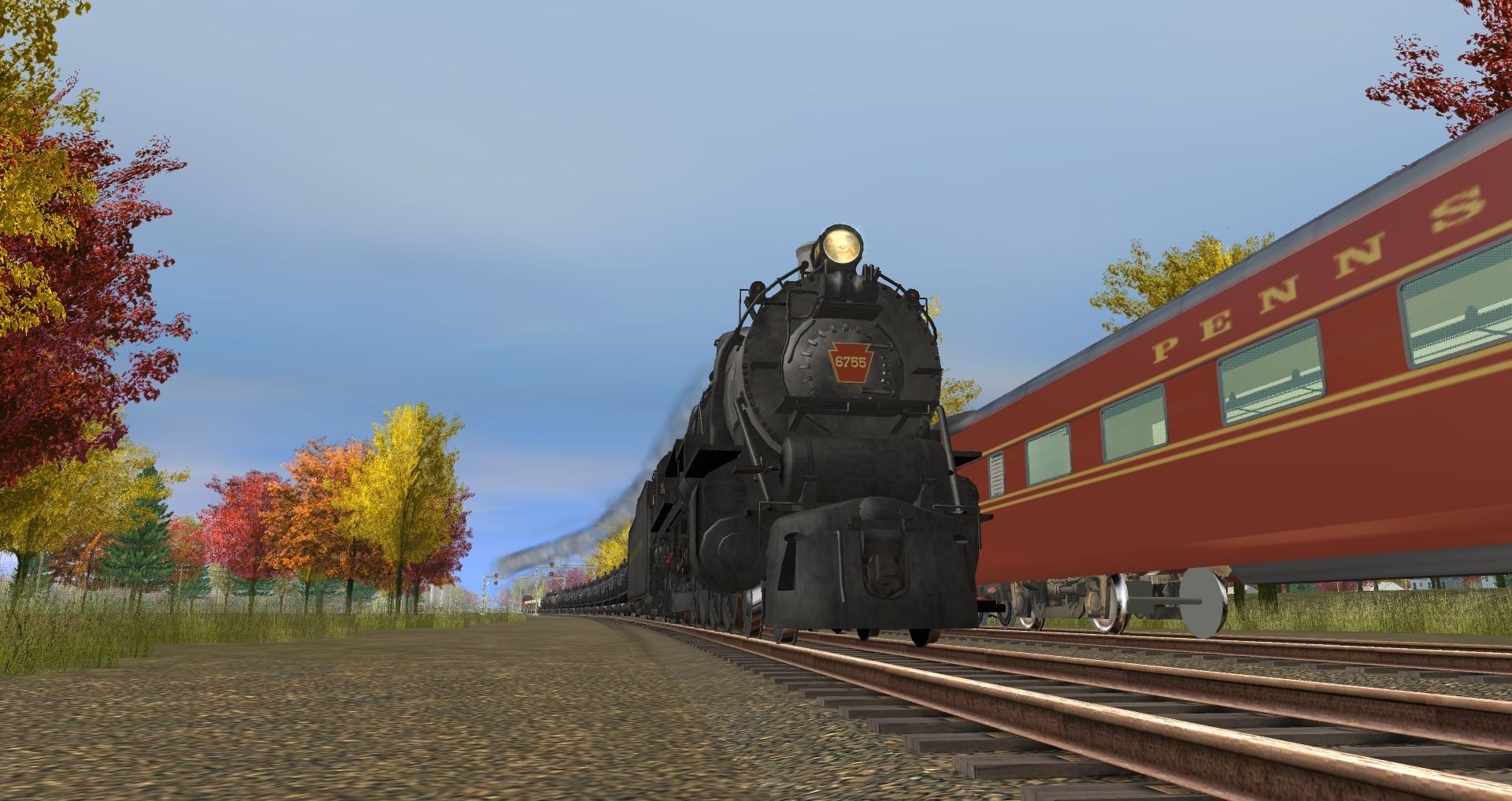 Tags: Trainz: A New Era, Indiana Western, PRR Indy Session 01, PRR M1b 6755 Engine, EMD E8A PRR 5890, E8 PRR 5709, PRR P85A Coach, PRR 4-4-2 Sleeper Imperial Trees, PRR 21 Roomette Sleeper Ravenna Inn, PRR M1b 6755 Tender, PRR 5-Double Bed-Bar Lounge Harbor Cove, PRR 21 Roomette Sleeper Massillion Inn, PRR Diner 4608, PRR M70a RPO