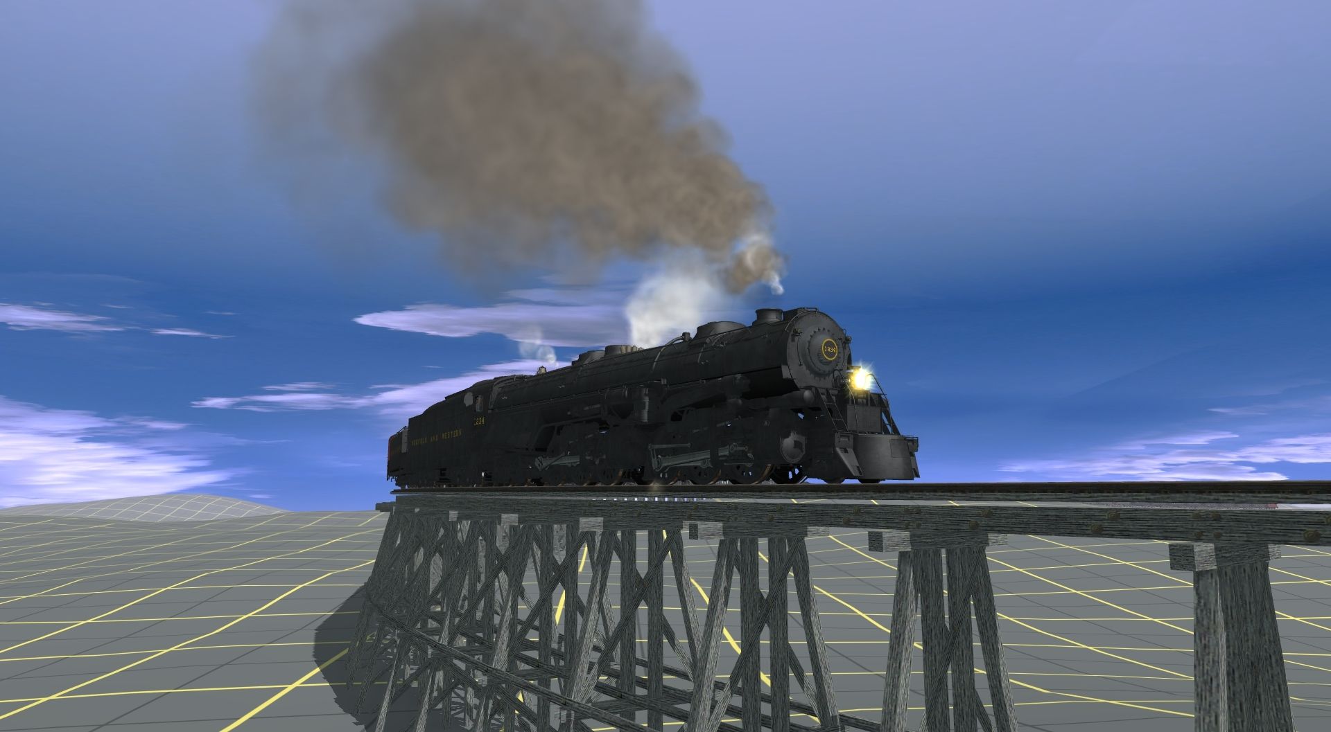 Tags: Trainz: A New Era, Southern Shortline to Redd Creek, Default, N&W A Class Engine V1, N&W A Class Tender, N&W Aux Tender, N&W Tool Car #9647, N&W Coal Hopper, NCRR-Coal 2 Bay Hopper, Coal 2 Bay Hopper Ford #MFX, Coal 2 Bay Hopper Boston & Maine #MFX, Coal 2 Bay Hopper N&W #MFX, Coal 2 Bay Hopper Southern #MFX, Generic Bobber Caboose