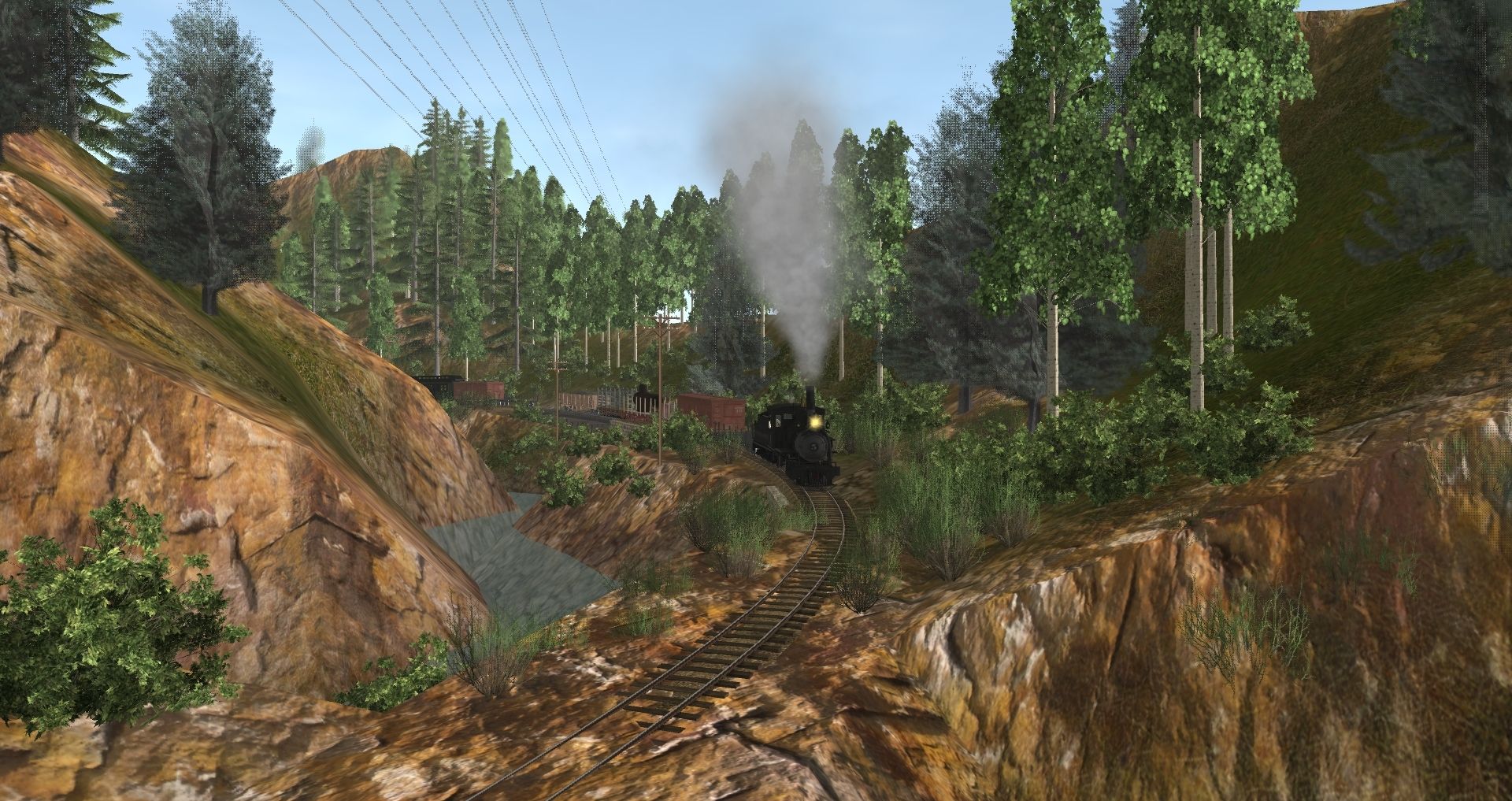 Tags: Trainz: A New Era, Berseria Northern RR, Default, C&S No. 5, C&S No. 5 Tender, 36NG 25' flatcar (NCNG), 30in Pulpwood Car, WP&Y_Hart_Gondola_316, WP&Y_Flatcar_5, 30ng Boxcar 30 foot, C&S Combine 20