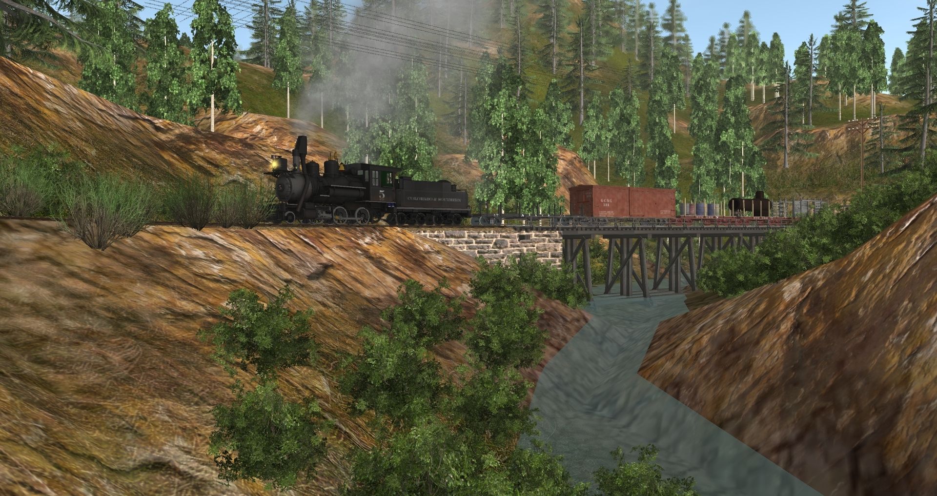 Tags: Trainz: A New Era, Berseria Northern RR, Default, C&S No. 5, C&S No. 5 Tender, 36NG 25' flatcar (NCNG), 30in Pulpwood Car, WP&Y_Hart_Gondola_316, WP&Y_Tankcar_36, WP&Y_Flatcar_5, 30ng Boxcar 30 foot, C&S Combine 20