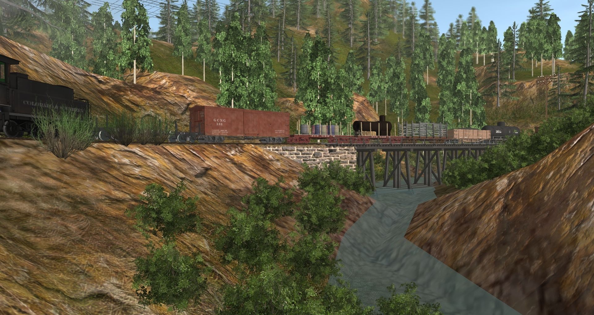 Tags: Trainz: A New Era, Berseria Northern RR, Default, C&S No. 5, C&S No. 5 Tender, 36NG 25' flatcar (NCNG), 30in Pulpwood Car, WP&Y_Hart_Gondola_316, WP&Y_Tankcar_36, WP&Y_Flatcar_5, 30ng Boxcar 30 foot, C&S Combine 20