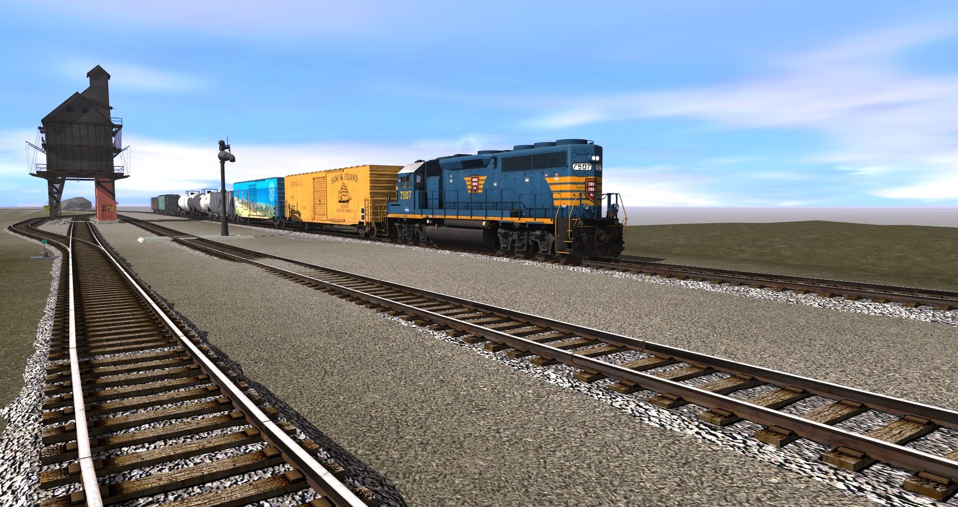 Tags: Trainz: A New Era, Butner Lines, 12/19/17, Cross Creek RR GP40-2, Custom 60' ACF Boxcar - Sam & Euan's, Custom 60' ACF Boxcar - San Luis Obispo, Custom 100 Ton Hopper - MRM, Custom 23000 gal tank - HK Oil, DT&I Greenville Gondola, DT&I PS-2 3510, EL 100 Ton Hopper