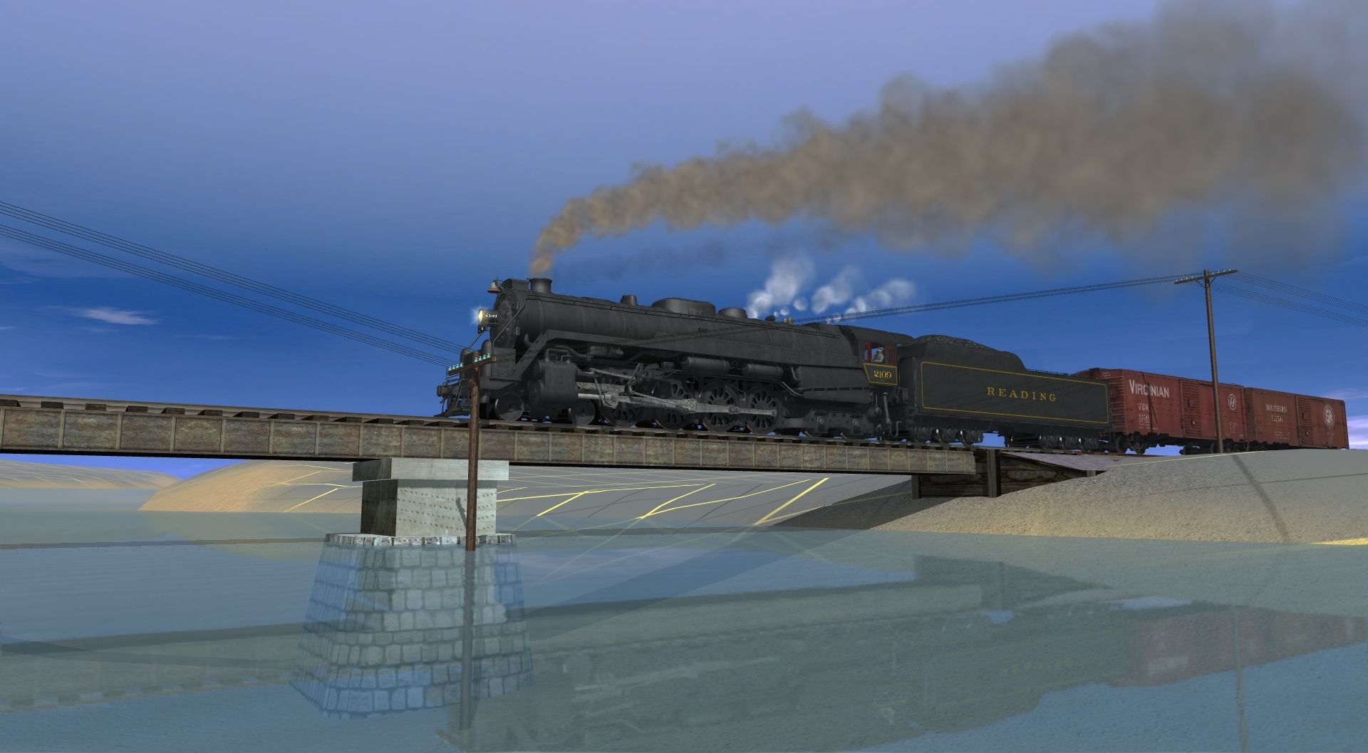 Tags: Trainz: A New Era, Southern Shortline to Redd Creek, Default, Reading T1 Freight Engine, Reading T1 Freight Tender, 40ft Boxcar VGN, 40ft Boxcar SOU, 70ton AAR Flatcar C&O, 38' X-3 Tank Car SHPX, 40ft Boxcar ACL, JRPX LO 4750 3 bay, JRPX 20800 gal tank car, JRPX BL 20800 gal tank car, Log Wagon Short Knuckle