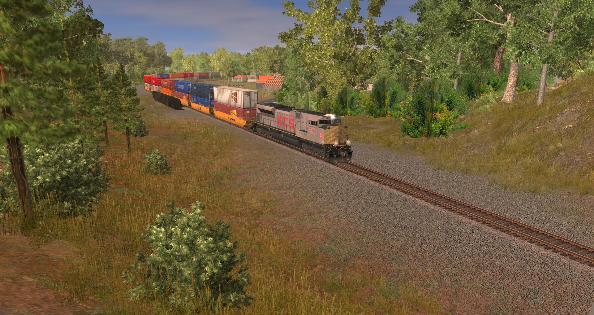Caption: KCS (Grey) EMD SD70ACe is leaving town going under the highway overpass.