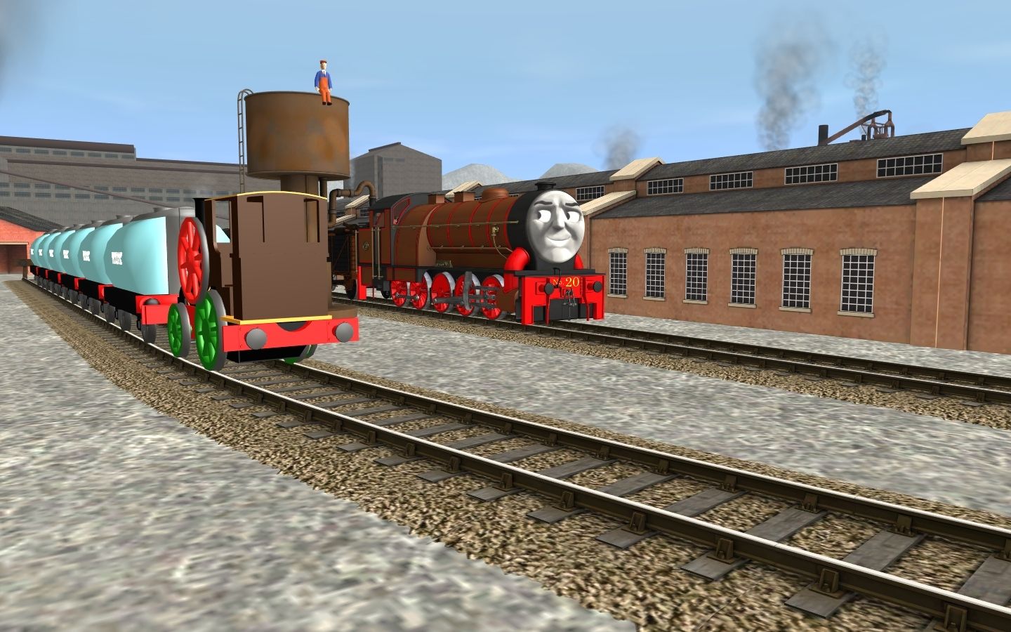 Tags: Trainz: A New Era, Freelance Steelwork photos, Freelance Steelwork photos - Default, Theo v3, Hurricane The Steelworks Engine, Water tanker, (#1TFM) Troublesome Truck Grey, (#1TFM) Ventilated GWR Van 2012, Sodor Brake Van Type 1 - Grey