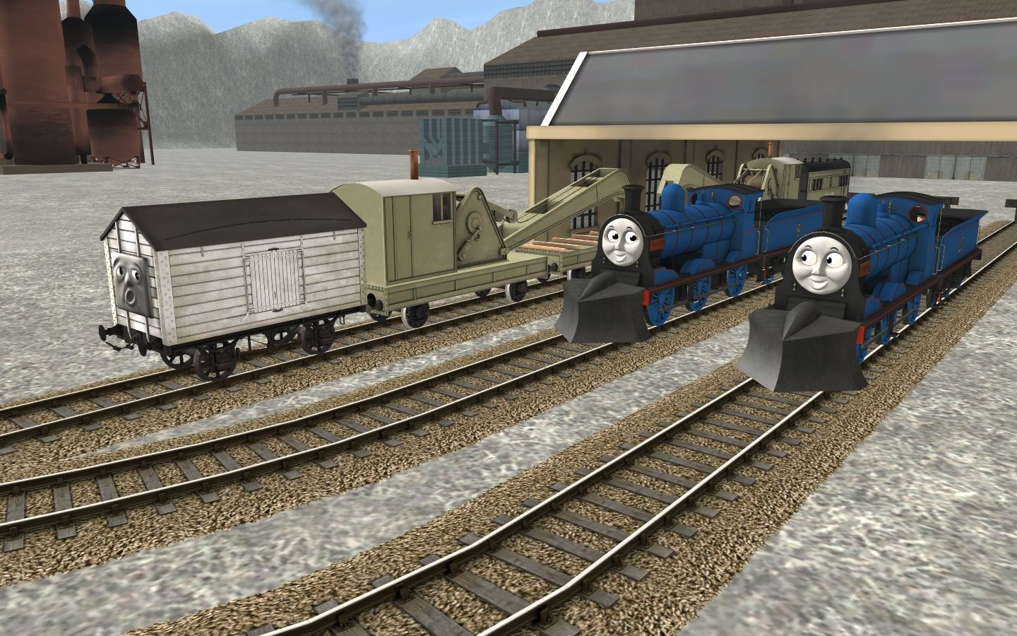 Tags: Trainz: A New Era, Freelance Steelwork photos, Freelance Steelwork photos - Default, RWS Douglas (NWR Blue), RWS Donald (NWR Blue), Theo v3, Hurricane The Steelworks Engine, Sodor Salt Wagon - White, RWS Snowplough, RWS Douglas Tender (NWR Blue), RWS Donald Tender (NWR Blue), Sodor Breakdown Flat Truck Sleepers, Sodor Breakdown Crane, Sodor Works Unit Coach