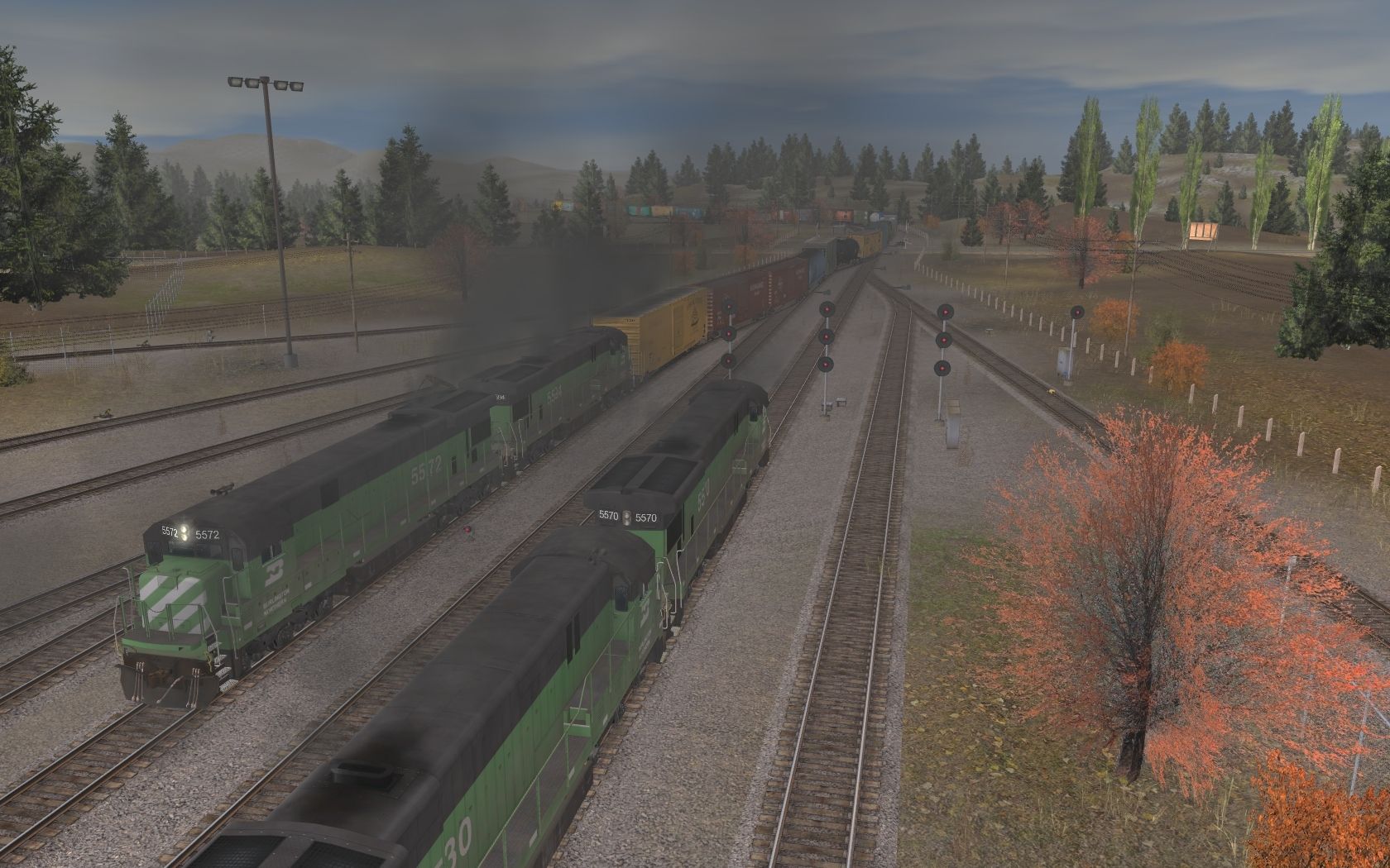 Tags: Trainz: A New Era, Legacy of the Burlington Northern v2, Legacy of the BN II - Multiplayer Session - Alpha, BN C30-7, BN SD7 low hood, BN 50' RBL ex-CB&Q, Custom 60' ACF Boxcar - Sam & Euan's, TUME-300501-Boxcar-50ft-MILW, BN 50' RBL, HB Cylindrical Hopper, NP 40' Hy-Cube Boxcar, UTLX 23000 gal Funnel-Flow tank car, Invisible Train, TUME-300583-Centerbeam-WP