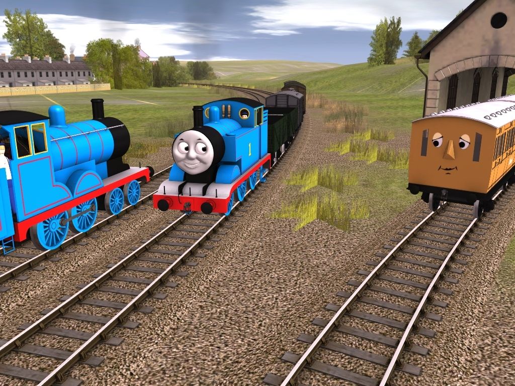 Tags: Trainz: A New Era, ZA - IoSCRV2 - Wellsworth & Suddery + Gordon's Hill & Maron, Edward The Blue Engine 2012, Thomas The Tank Engine 2012, Old Coach First Class, Edward's Tender 2012, Annie The Coach 2012, Troublesome Truck - Green (Small Face), Old Coach Brake, Clarabel The Coach 2012, (#1TFM) Ventilated GWR Van 2012, (#1TFM) Sodor Tanker Tidmouth 2015, Sodor Cattle Wagon