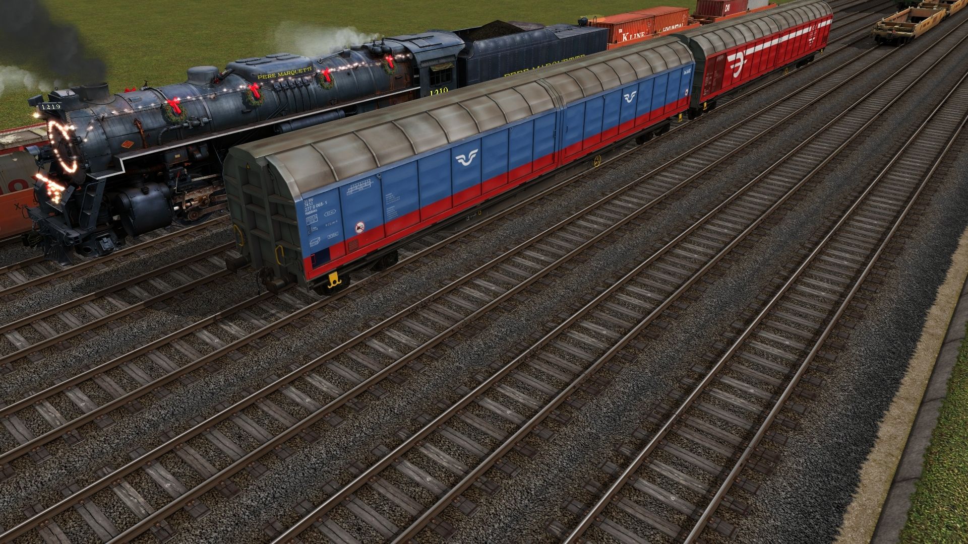 Tags: Trainz: A New Era, Pascal, Pascal - Par défaut, Pere Marquette N-1, GP38-2_ATSF_worn_HP_TANE, Habbins 941 de SJ, Pere Marquette N-1 Berkshire Tender, Habbins 941 de SJ, CHN X2K container wagon red, CHN X2K container wagon yellow, Custom 40' Boxcar - AU Logitistics, Custom 40' Boxcar - a giberiginal Game Store, Custom 40' Boxcar - Grizzled Aussie's Dark Rum, Custom 40' Boxcar - HIGGIKAY INDUSTRIES