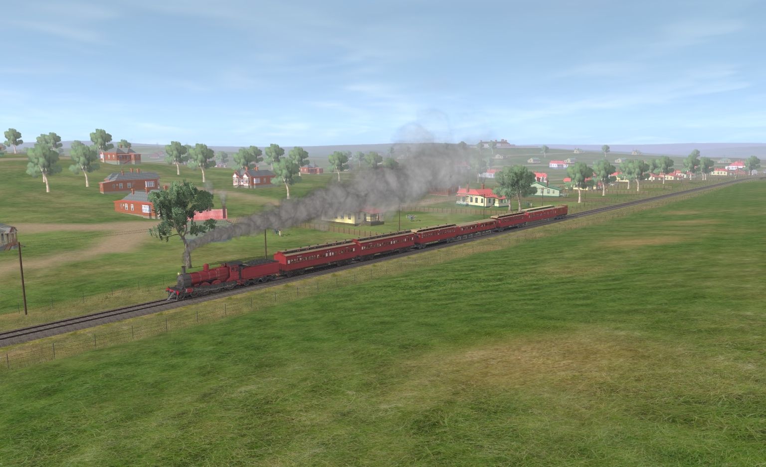 Tags: Trainz: A New Era, Healesville - 1913-1920, Down Excursion Train - Melbourne Cup Day, VR DD T2 WW1 Red C BG, VR DD T2 WW1 Red C Ten BG, VR ABL T1 1910-1954 carriage, VR BB class American Saloon pass car - 1, VR B car 6 wheel BG, VR B car 4 wheel BG, VR AB class American Saloon pass car - 1, VR AW car T1 - 1924-1954 BG, VR Z Guards Van T1 1930s-1950s - BG