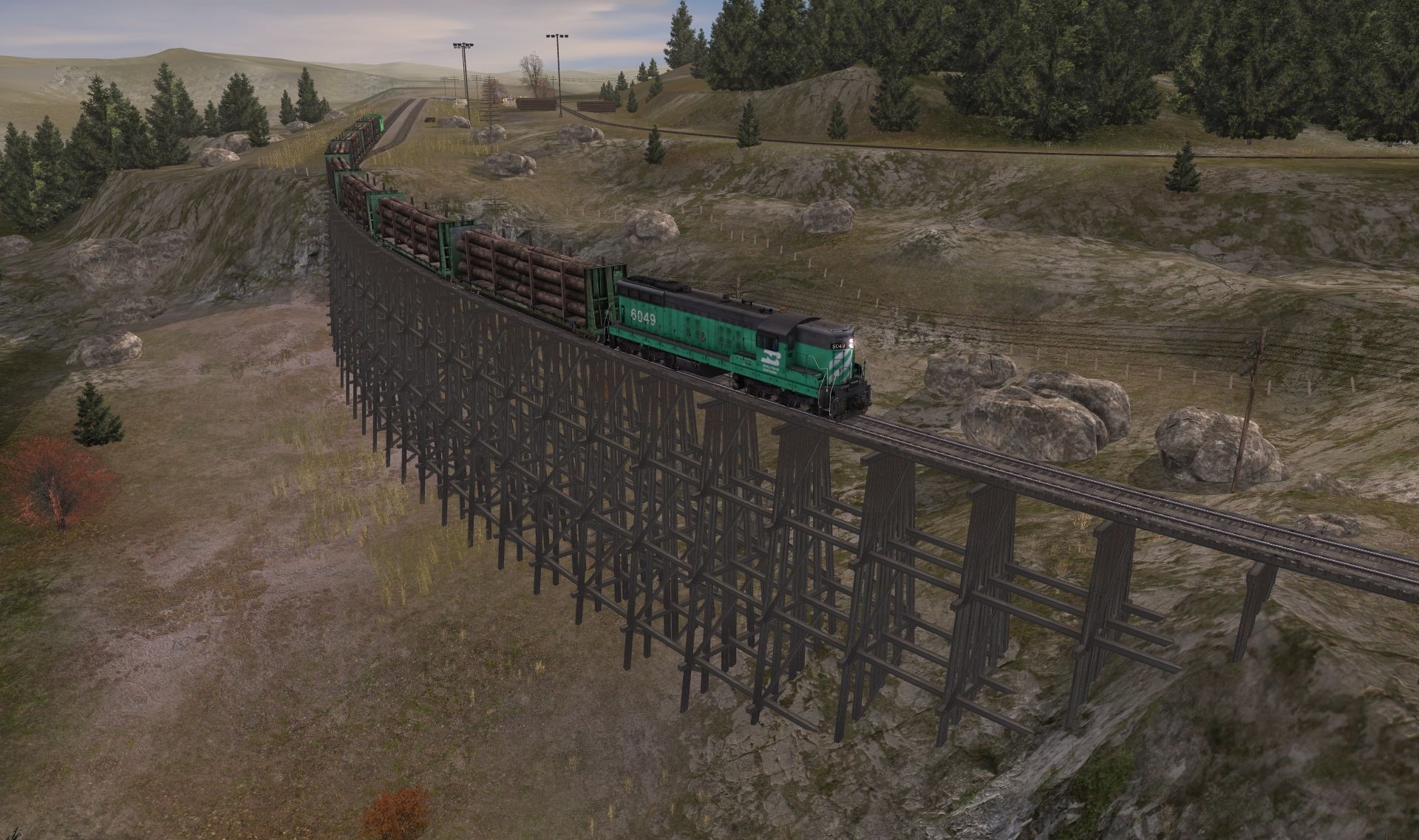 Posted by: seal6901 | Posted:2018-12-30 04:58:33 Caption: Tags: Trainz: A New Era, Legacy of the Burlington Northern v2, BN SD7 high hood, BN 62Ft. Bulkhead (early era), BN Ce-11 Caboose