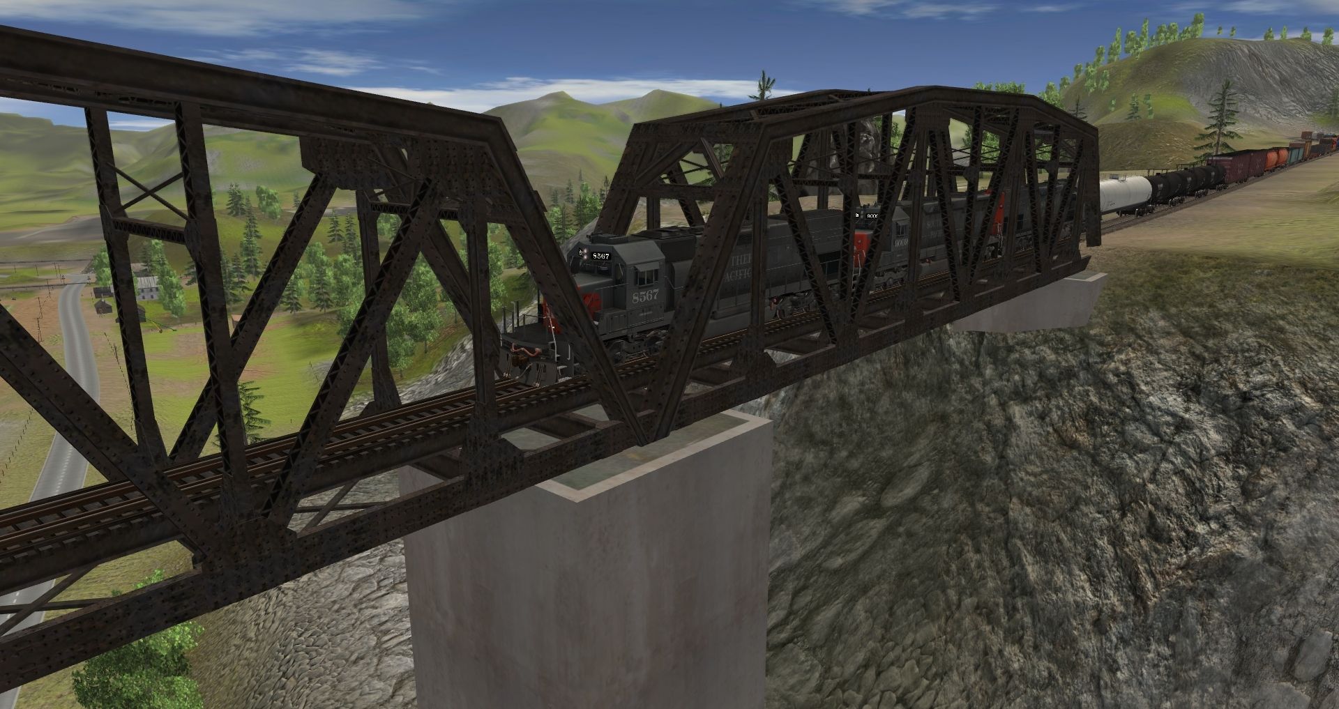 Tags: Trainz: A New Era, Kickstarter County, kljkl, SP SD40T-2, SP SD45, UTLX LPG Tank, TSCX 20800 gal tank car, SP 60Ft.9In. woodchip gondola, CNWX Cylindrical Hopper, BPRR 4 Bay Hopper 4, SP PC&F 6033, PRR FM flat car, Mill Gondola 52' WL&G (5700 series), MILW PCF 57' Reefer