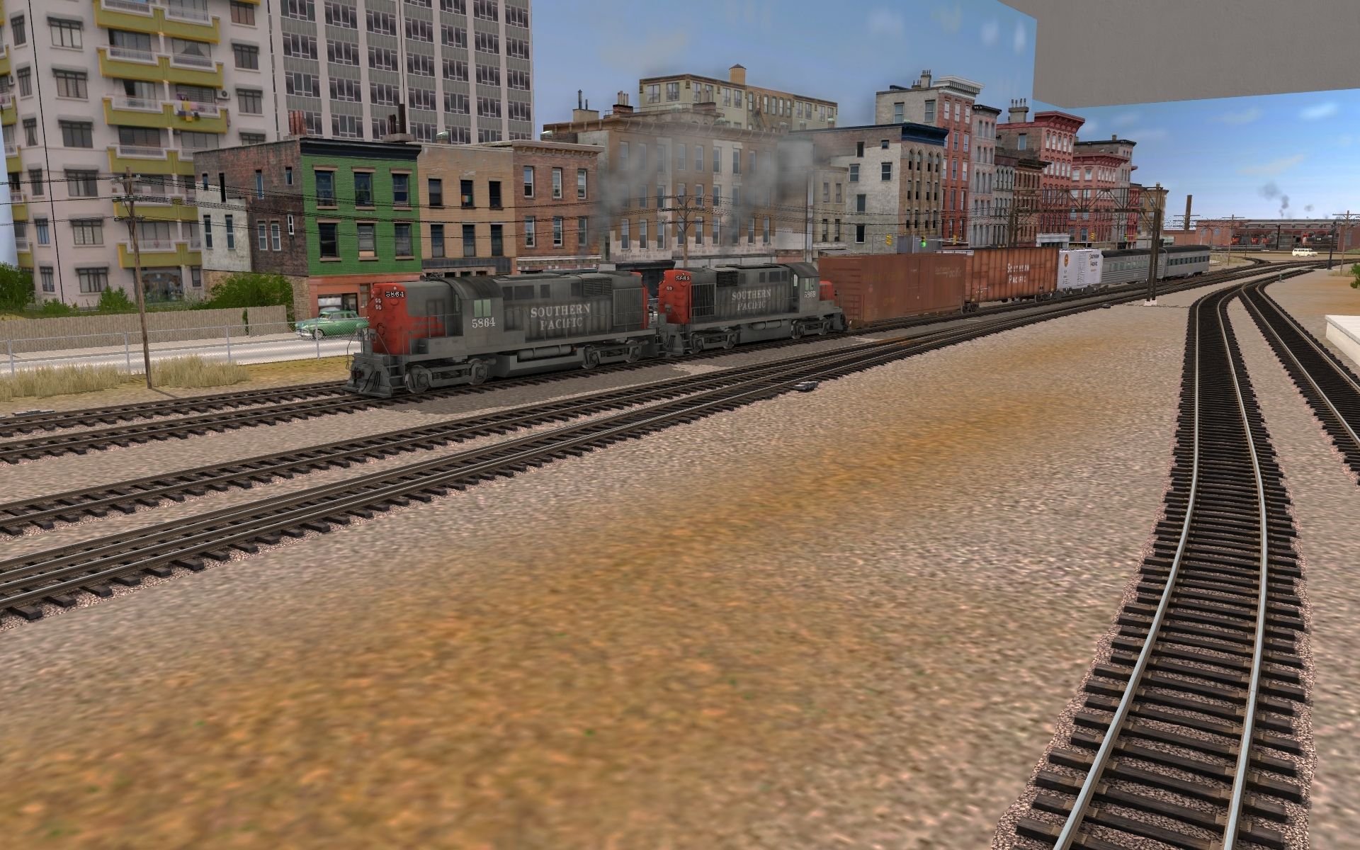 Tags: Trainz: A New Era, Union Terminal, ALCo RS-11 SP, ALCo RS-11 SP Low-nose, SW1500 Southern Pacific - 2480, SP GS-4 Engine Daylight, SP RSD-5 #5501, SP F7B, SP F7A, ALCo RS-11 SP 5722, ALCo RSD-15 SP 3101, SP SD9 high hood, SP GP40-2