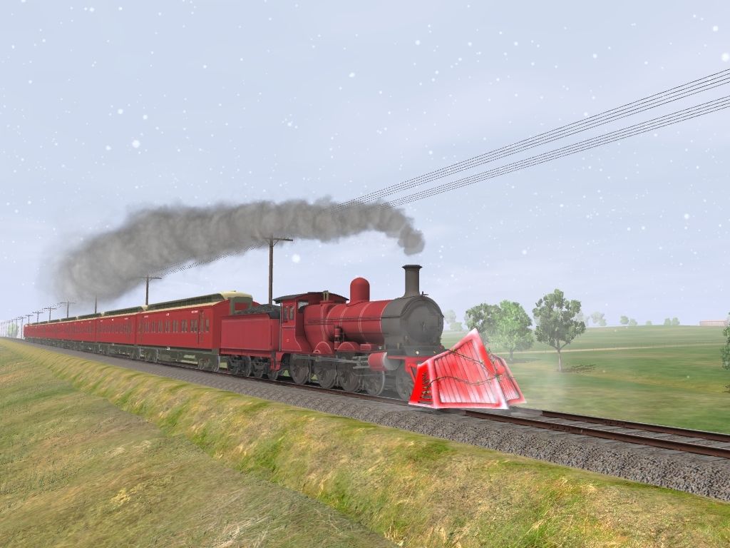 Tags: Trainz: A New Era, Healesville - 1913-1920, VR DD T2 WW1 Red C BG, Sodor Snowplough Red (ver.1) (Snow on), VR DD T2 WW1 Red C Ten BG, VR BW car T1 - 1924-1954 BG, VR CW van T1 - 1924-1954 BG