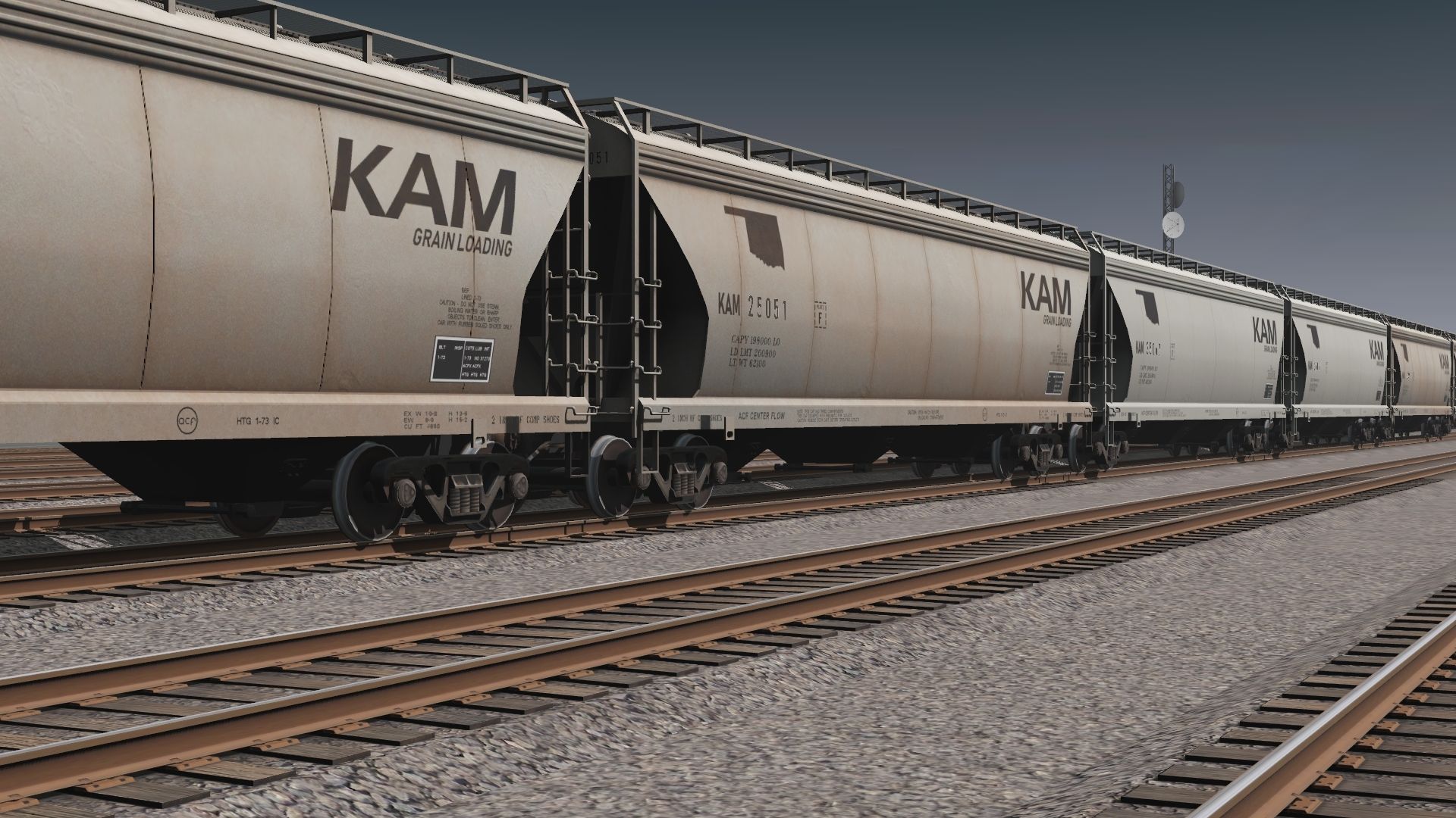 Tags: Trainz Railroad Simulator 2019, Konawa & Arbuckle Mtn, Default, KAM ACF Centerflow 3 Bay long hatch 1, KAM ACF Centerflow 3 Bay long hatch 2