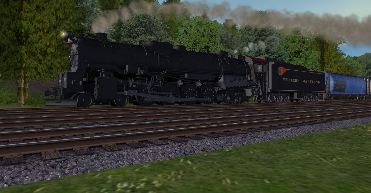 Tags: Trainz: A New Era, Happy Place RR, WM J1 Potomac Engine V1, WM J1 Potomac Tender V1, HB Cylindrical Hopper, MWGX (dirty) Cylindrical Hopper, GBCX Cylindrical Hopper, PFE R-40-2 Reefer Late, PFE R-40-2 Reefer Early, TSCX 20800 gal tank car, USRA C Gondola C&O, Cylindrical Hopper - Cotton Belt, C&O Coal Gondola