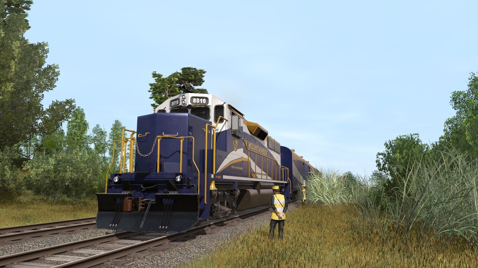 Tags: Trainz Railroad Simulator 2019, Nouvel itinéraire, Par défaut, RMRX GP40-2, RMRX Baggage/Generator, RMRX 'Silver Leaf' Glacier Dome