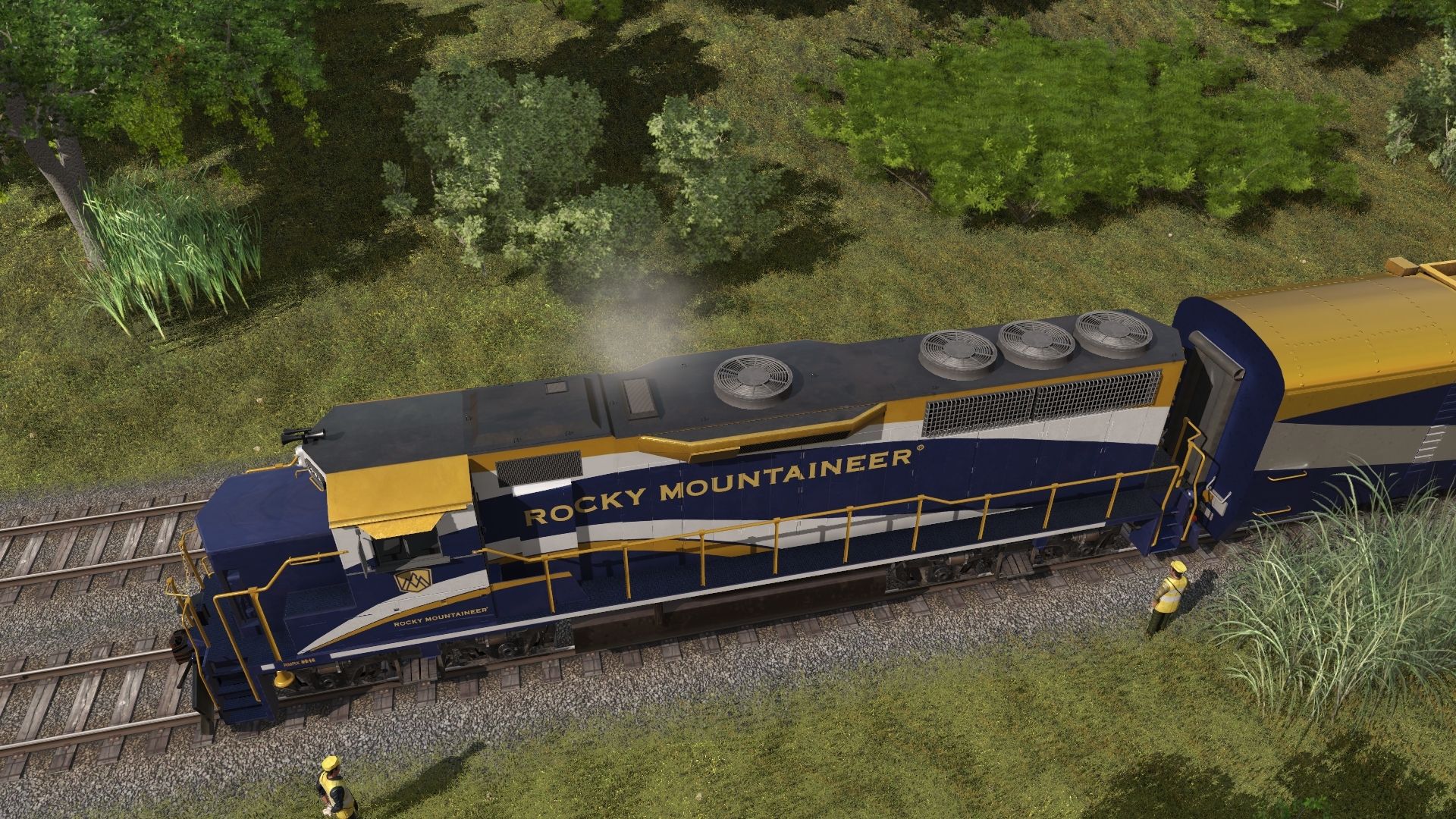 Tags: Trainz Railroad Simulator 2019, Nouvel itinéraire, Par défaut, RMRX GP40-2, RMRX Baggage/Generator, RMRX 'Silver Leaf' Glacier Dome
