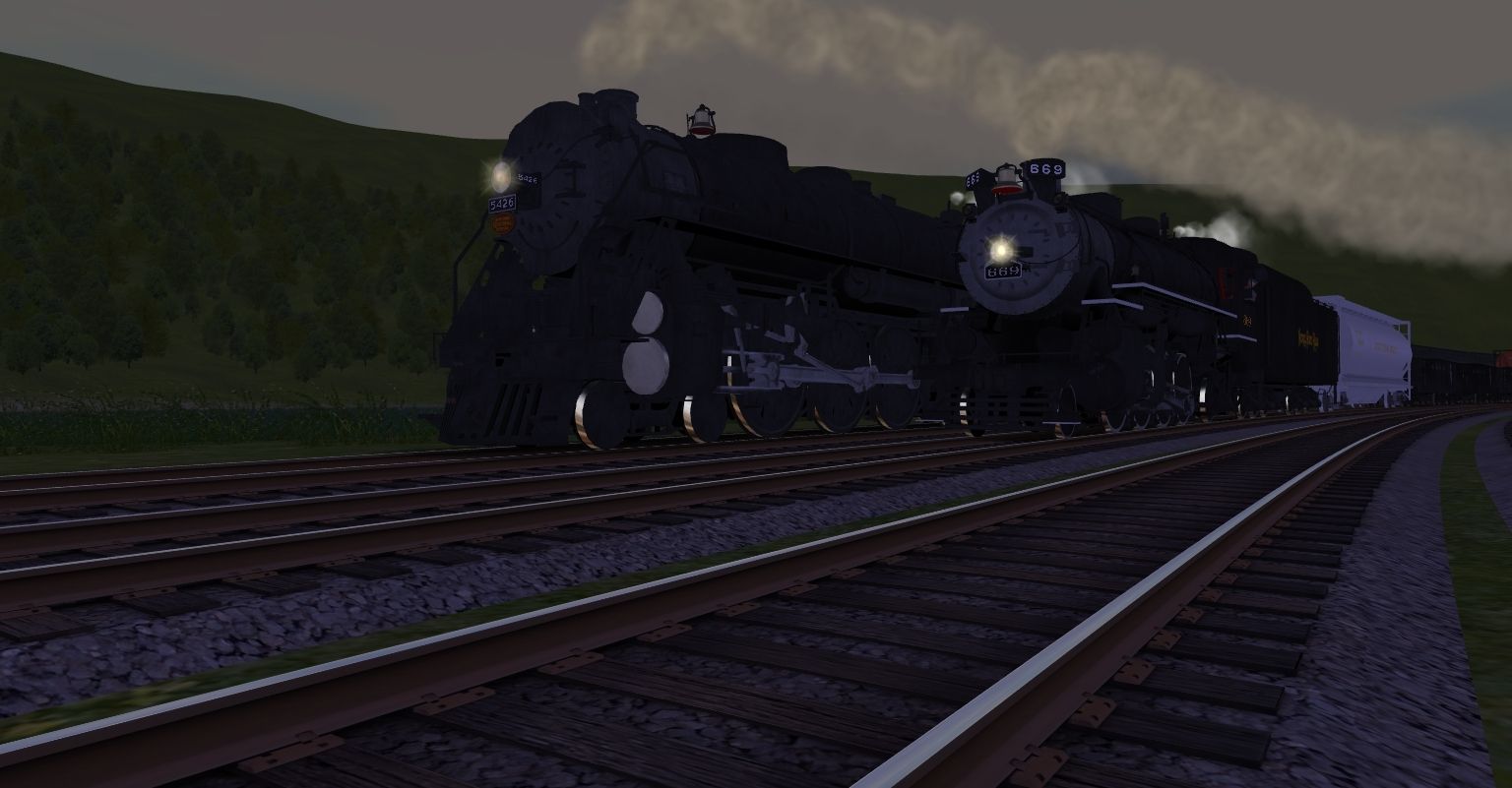 Tags: Trainz: A New Era, Happy Place RR, NYC J3a Hudson Engine, NKP Mikado Engine V2, NYC J3a Hudson Tender, NKP Mikado Tender V2, Unlettered Pullman Style RPO-Baggage Combine, Cylindrical Hopper - Cotton Belt, Unlettered Pullman Baggage-Express Car, C&O Coal Gondola, Unlettered Pullman Coach, CNWX Cylindrical Hopper, Unlettered Pullman Diner