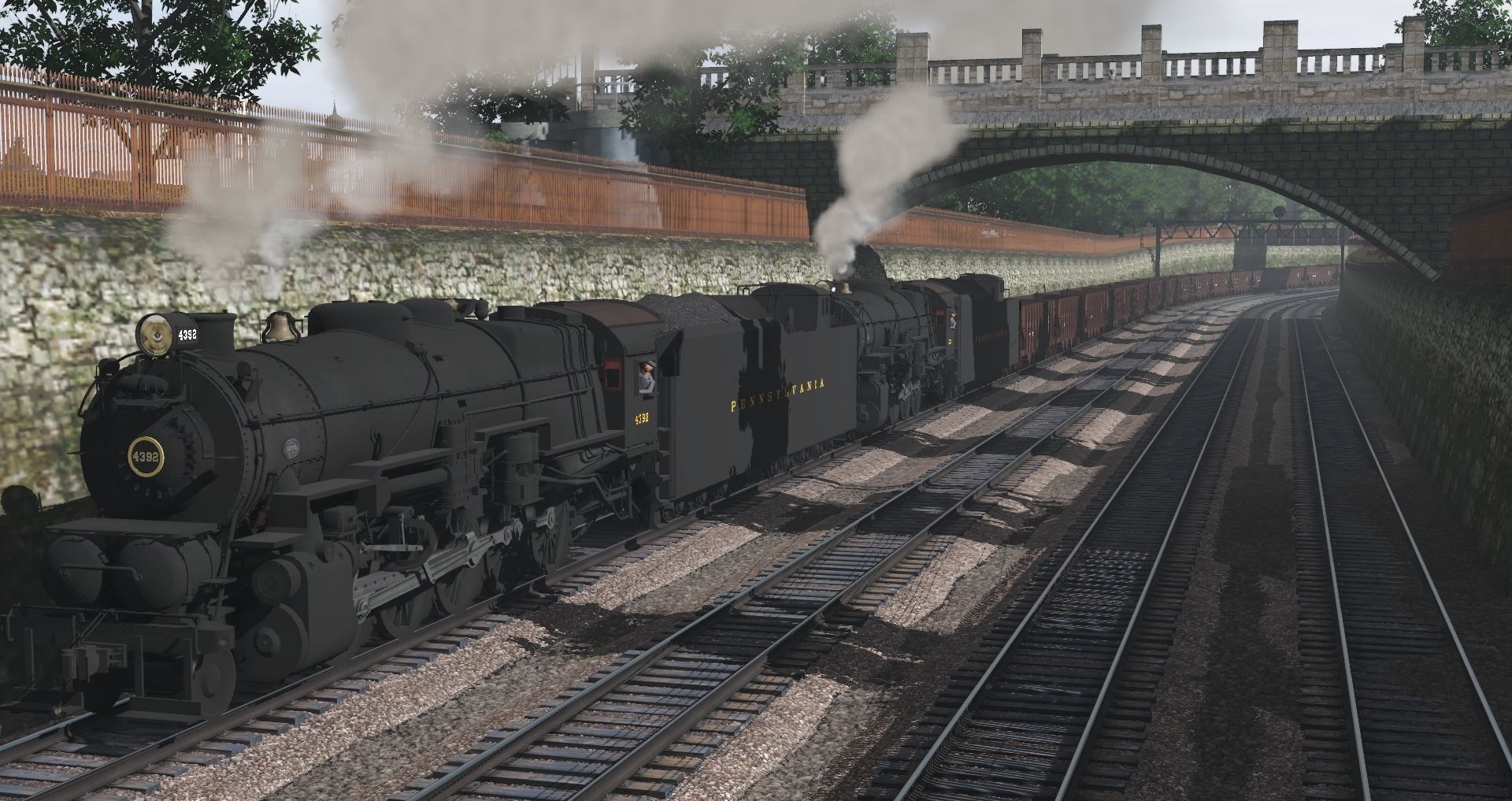 Tags: Trainz Railroad Simulator 2019, PRR pitts, Default, PRR I1sa Engine Post-War, PRR A5 94 Engine, PRR E6s Engine, GWR horse drawn parcel van - trotting, NYC Niagara Engine, PRR I1sa Tender Coast to Coast Post-War, PRR H21a Hopper, PRR N5c Caboose 2, PRR N5c Caboose 1, PRR A5 94 Tender, 40ft Boxcar Fowler Monon
